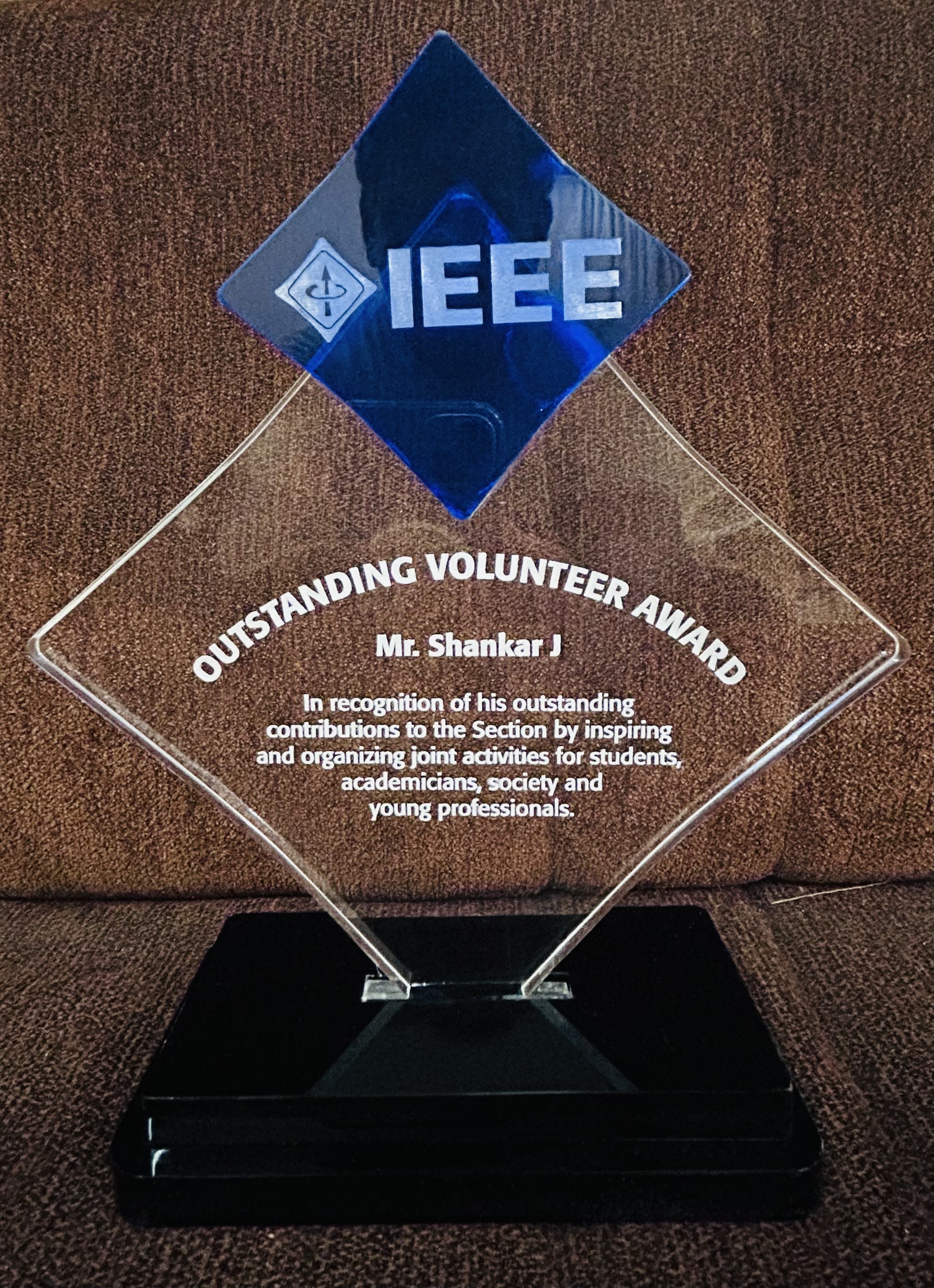 Shankar is a dedicated IEEE Volunteer, Mentor of Change (Atal Tinkering Lab, AIM, NITI Aayog, Govt of India), and licensed Amateur Radio Operator (VU3FIY). He is a recipient of multiple IEEE awards and has won several honors for leadership and volunteer contributions to student and academic communities.